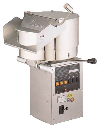 Модель оснащена цифровым управлением, системой непосредственного впрыска масла в котел, выключателями с 2 сторон и правой рукояткой для выгрузки готовой продукции. Основание выполнено из нержавеющей стали, котел - из стали с никелированным покрытием.