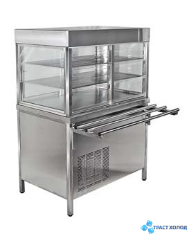 Прилавок охлаждаемый предназначен для демонстрации, временного хранения и раздачи холодных блюд: закусок, салатов, фруктов и охлаждаемых третьих блюд. Витрина оснащена подсветкой, электронным терморегулятором температуры и автоматическим режимом оттаивания. Дверцы открываются с внутренней и внешней стороны (покупателя и персонала). Закрывают витрину стеклопакеты, что в отличие от обычного стекла эффективнее поддерживает температурный режим. Рабочая температура прилавка устанавливается с помощью электронного терморегулятора.