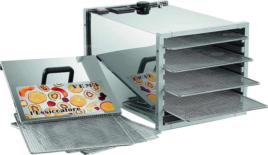 Дегидратор Vema EC 2103/4 применяется на предприятиях общественного питания и торговли, в производственных цехах, а также в домашних условиях для сушки овощей, грибов, фруктов и ягод. Электромеханическая панель управления. Корпус выполнен из нержавеющей стали.