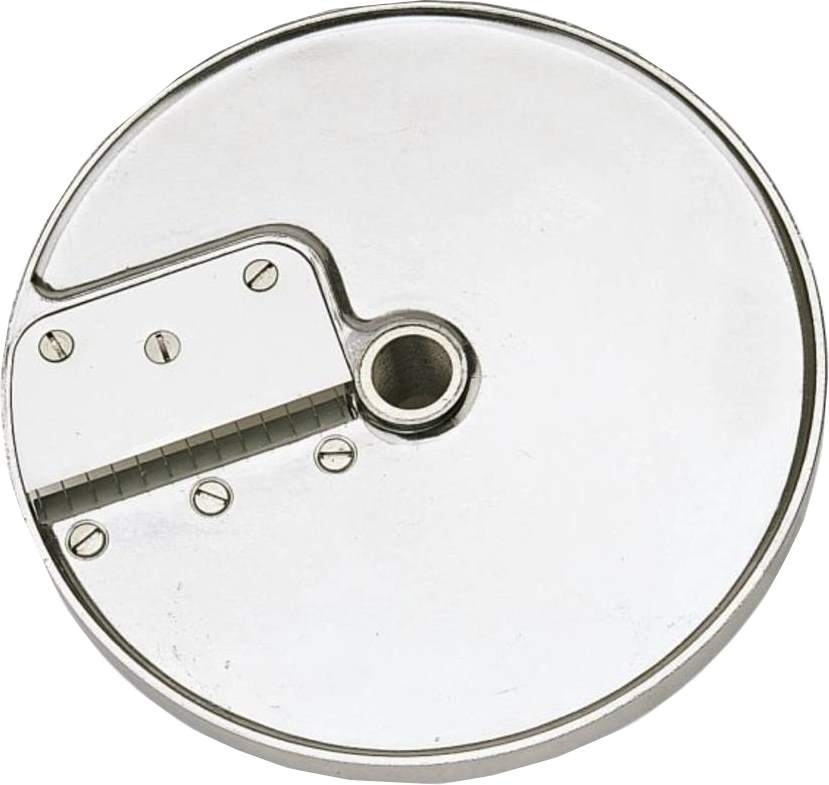 Диск нарезной Robot Coupe 28199 3мм гофрет применяется совместно с овощерезкой CL50 Gourmet для нарезки тонкими волнистыми ломтиками с дырочками гофры различных продуктов для приготовления закусок, салатов, десертов, первых и вторых блюд на предприятиях общественного питания и торговли.