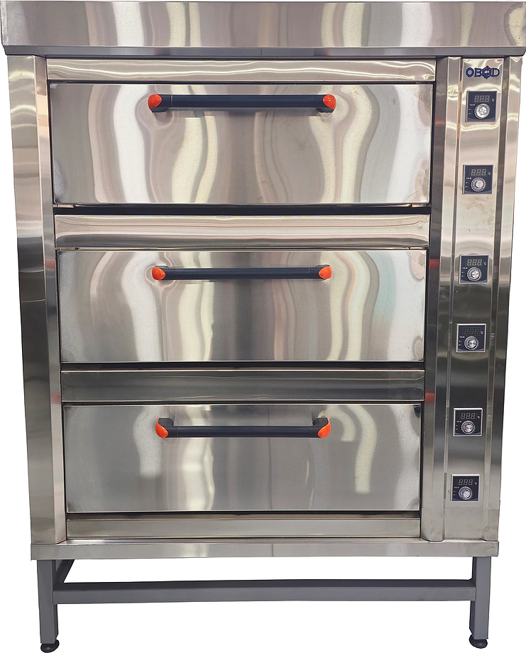 Духовой шкаф OBOD 3 уровня предназначен для приготовления различных блюд и выпечки хлебобулочных изделий на предприятиях общественного питания и торговли. Модель оснащена регулируемыми по высоте ножками. Корпус, дверь, верхний и нижний ТЭНы выполнены из нержавеющей стали, под - из углеродистой стали толщиной 3 мм, подставка - из трубы 40х40 мм.