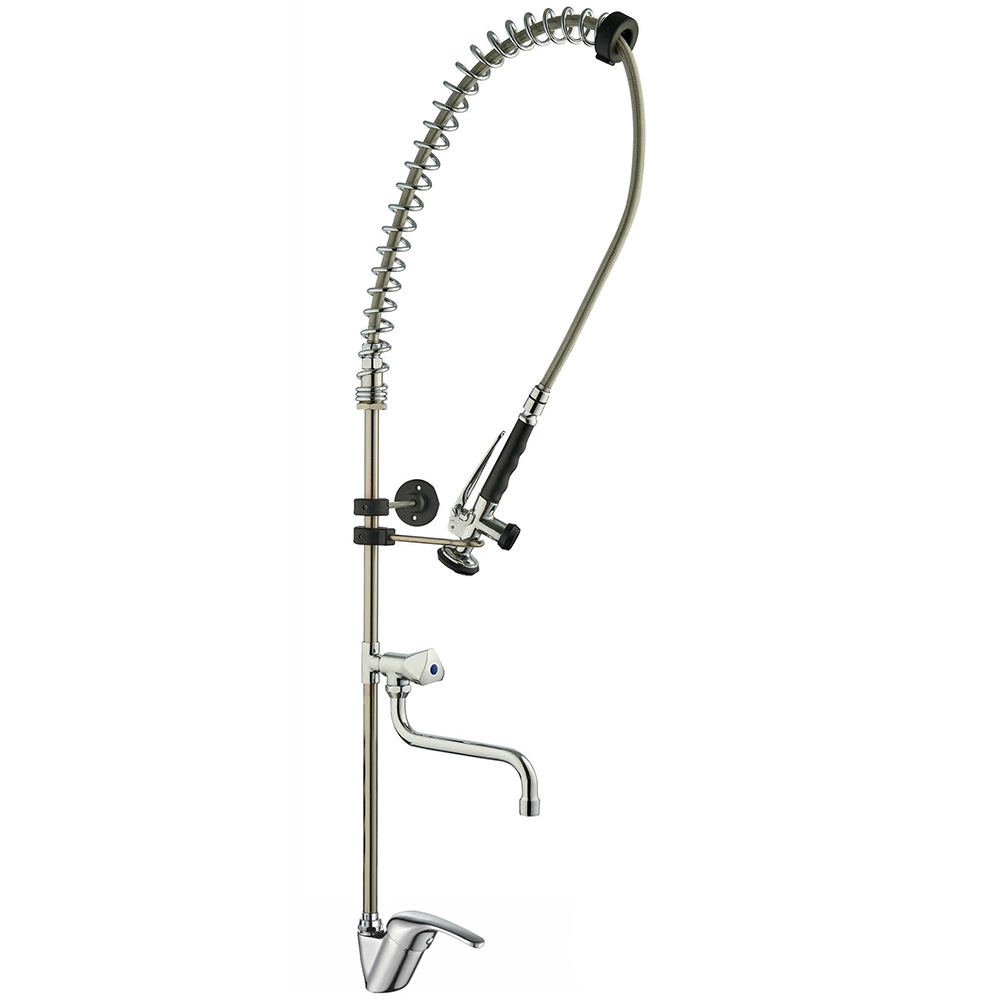 Душирующее устройство AIRHOT PR-350MTR в комплекте со смесителем и краном используется для предварительной очистки посуды перед загрузкой её в посудомоечную машину, а также для мытья овощей и фруктов на предприятиях общественного питания. Модель оснащена смесителем для горячей и холодной воды и кронштейном для крепления на стену. Корпус изготовлен из латуни.
