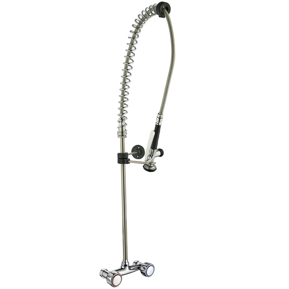 Душирующее устройство AIRHOT PR-350W в комплекте со смесителем используется для предварительной очистки посуды перед загрузкой её в посудомоечную машину, а также для мытья овощей и фруктов на предприятиях общественного питания. Модель оснащена смесителем для горячей и холодной воды и кронштейном для крепления на стену. Корпус изготовлен из латуни.