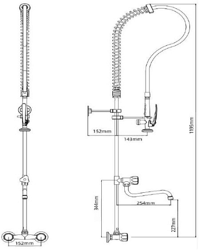 Душирующее устройство AIRHOT PR-350WT в комплекте со смесителем и краном используется для предварительной очистки посуды перед загрузкой её в посудомоечную машину, а также для мытья овощей и фруктов на предприятиях общественного питания. Модель оснащена смесителем для горячей и холодной воды и кронштейном для крепления на стену. Корпус изготовлен из латуни.