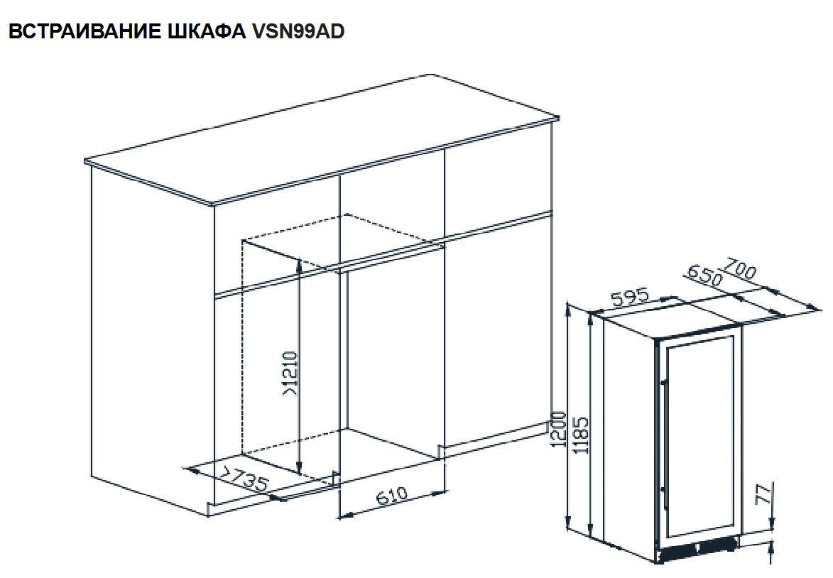 • Размеры ниши (ШхГхВ): 610х735х1210 мм