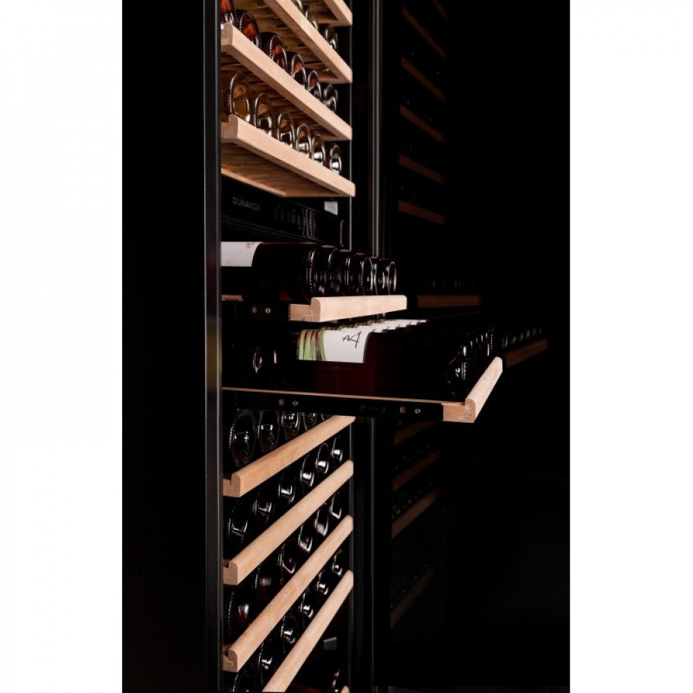 Винный шкаф Dunavox DX-166.428SDSK предназначен для демонстрации, хранения и создания оптимальных условий для сохранения всех вкусовых свойств вина в бутылках на предприятиях общественного питания, торговли, в барах, ресторанах, специализированных магазинах, частных домах или квартирах. Модель оснащена сенсорной панелью управления и LED-подсветкой синего цвета в каждой зоне. Корпус выполнен из окрашенного металла, дверь - из бесшовной стальной рамы и тонированного стекла с защитой от ультрафиолетовых лучей, выдвижные полки - из нелакированного бука, накладная ручка двери - из нержавеющей стали.
