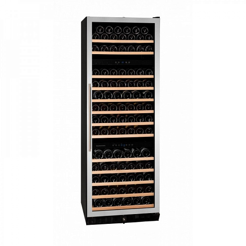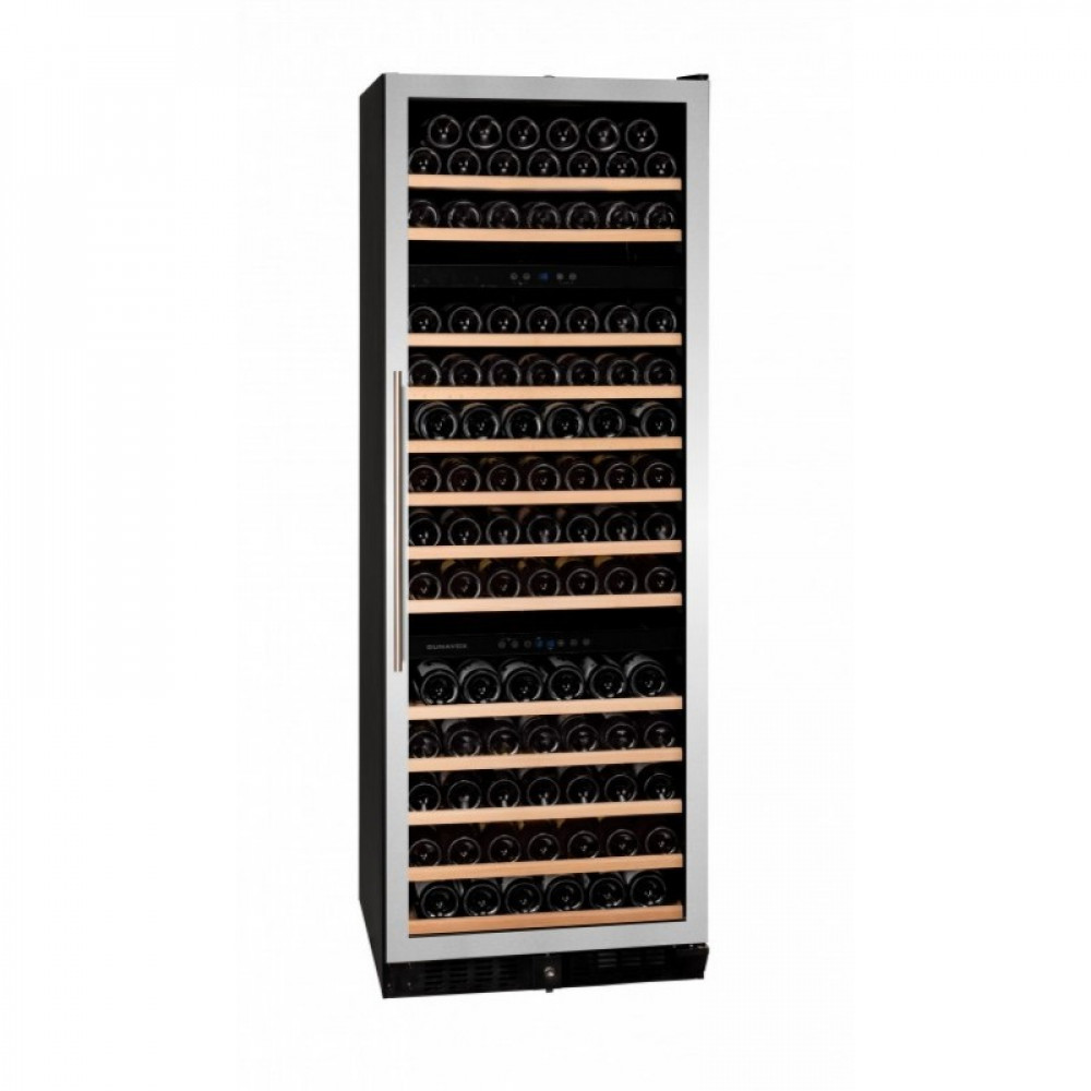 Винный шкаф Dunavox DX-170.490STSK предназначен для демонстрации, хранения и создания оптимальных условий для сохранения всех вкусовых свойств вина в бутылках на предприятиях общественного питания, торговли, в барах, ресторанах, специализированных магазинах, частных домах или квартирах. Модель оснащена сенсорной панелью управления и LED-подсветкой синего цвета в каждой зоне. Корпус выполнен из окрашенного металла, дверь - из бесшовной стальной рамы и тонированного стекла с защитой от ультрафиолетовых лучей, выдвижные полки - из нелакированного бука, накладная ручка двери - из нержавеющей стали.