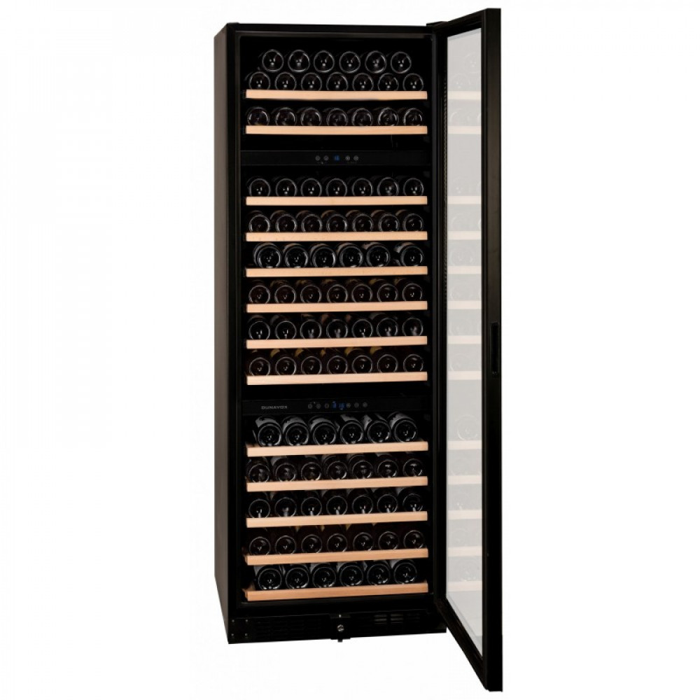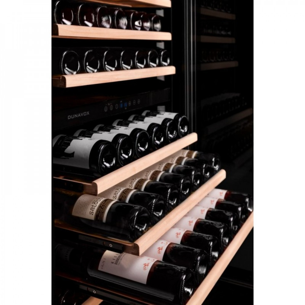 Винный шкаф Dunavox DX-181.490DBK предназначен для демонстрации, хранения и создания оптимальных условий для сохранения всех вкусовых свойств вина в бутылках на предприятиях общественного питания, торговли, в барах, ресторанах, специализированных магазинах, частных домах или квартирах. Модель оснащена сенсорной панелью управления и LED-подсветкой синего цвета в каждой зоне. Корпус выполнен из окрашенного металла, дверь - из рамы черного цвета и тонированного стекла с защитой от ультрафиолетовых лучей, выдвижные полки - из нелакированного бука, накладная ручка двери - из нержавеющей стали.