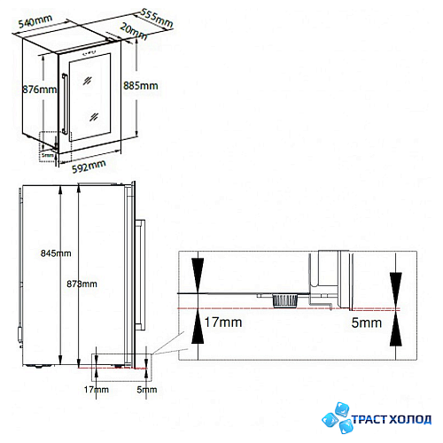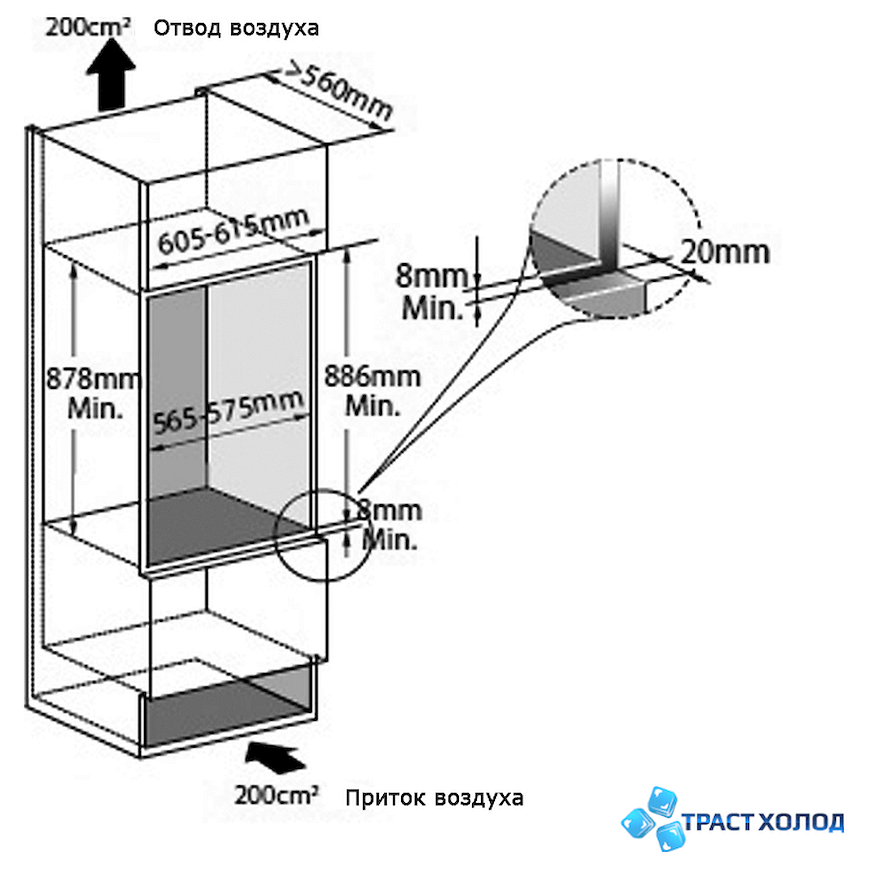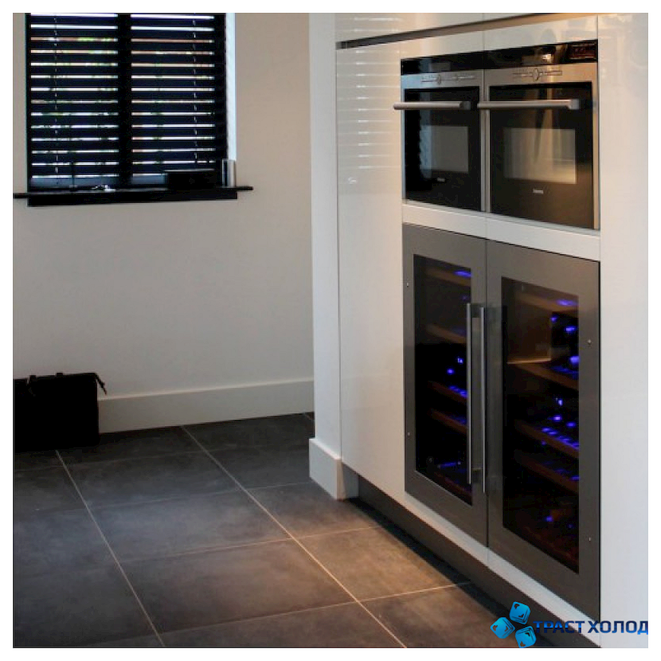 Винный шкаф предназначен для установки в мебельную нишу, для охлаждения необходимо предусмотреть забор воздуха и отвод его из ниши.