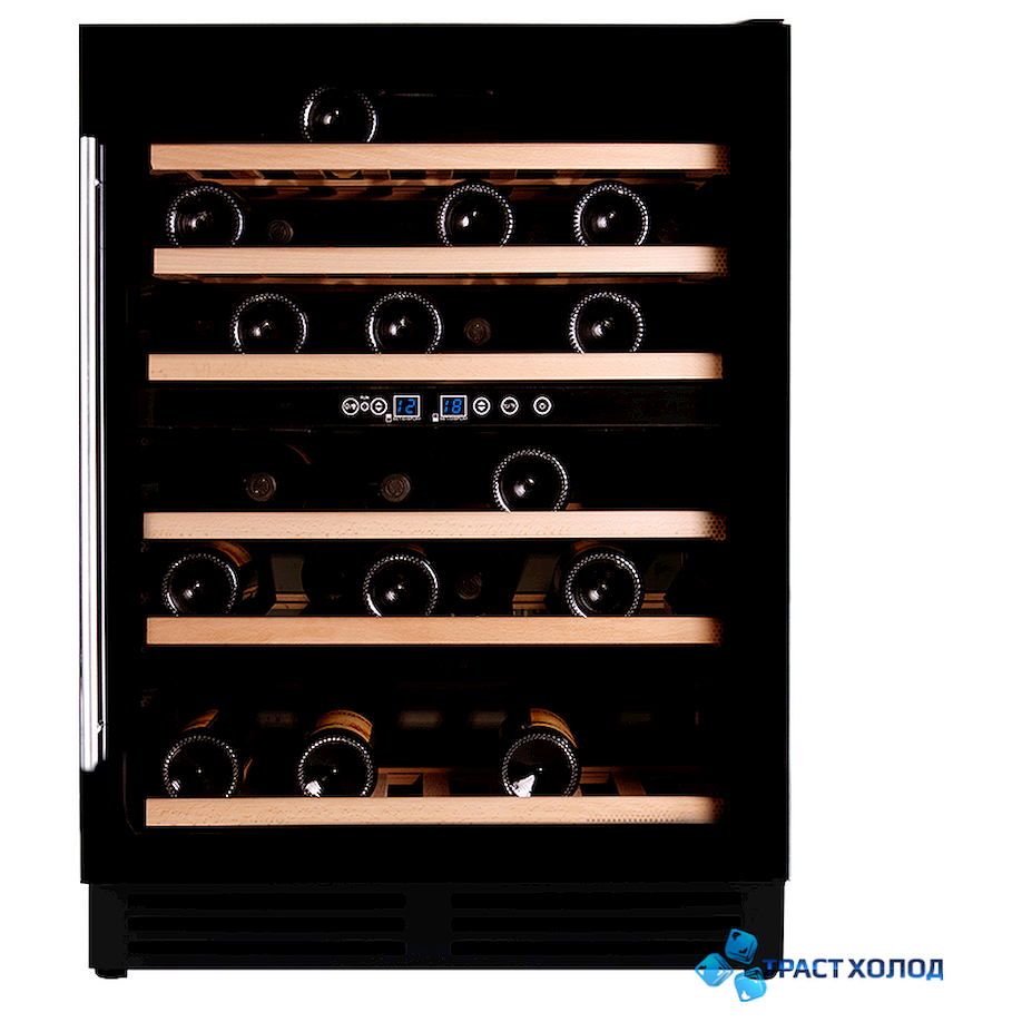 DX-51.150DBK - компрессорный встраиваемый винный шкаф на 51 бутылку с 2 зонами охлаждения. Шкаф очень тихий, уровень шума всего 39 дБ. Вы можете выставить любую температуру внутри в диапазоне от 5? до 22?. Верхняя зона для 8 бутылок охлаждает в диапазоне 5?-12? C, нижняя для 24 бутылок работает в диапазоне 12?-22? C