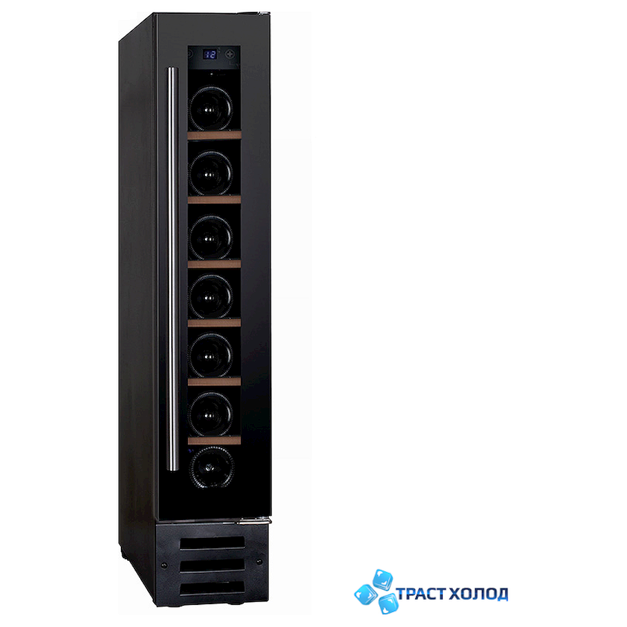 DX-7.22BK - это младшая модель серии Эксклюзив рассчитанная на 7 бутылок. Стальной корпус выполнен в узком дизайне всего 148 мм. Место для него найдется даже на небольшой кухне.