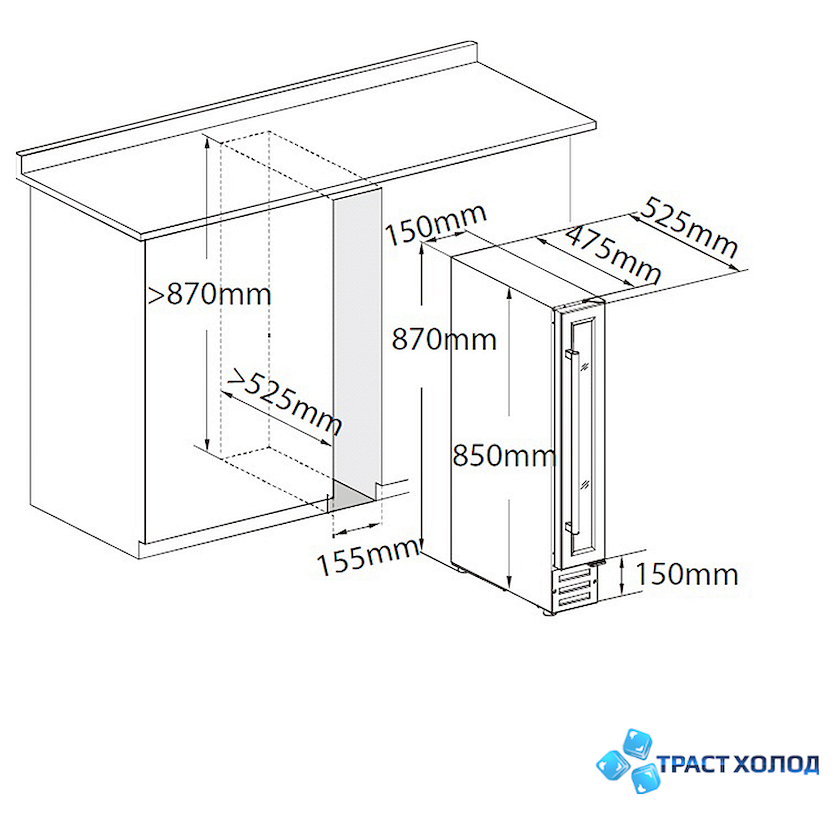 Шкаф очень тихий, уровень шума всего 39 дБ. Вы можете выставить любую температуру внутри в диапазоне от 5? до 22?.