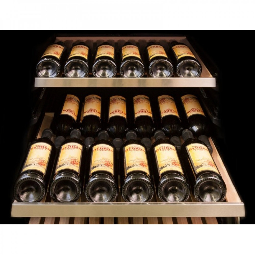 Винный шкаф Dunavox DX-94.270SDSK предназначен для демонстрации, хранения и создания оптимальных условий для сохранения всех вкусовых свойств вина в бутылках на предприятиях общественного питания, торговли, в барах, ресторанах, специализированных магазинах, частных домах или квартирах. Модель оснащена сенсорной панелью управления и LED-подсветкой в каждой зоне. Корпус выполнен из окрашенного металла, дверь - из бесшовной стальной рамы и тонированного стекла с защитой от ультрафиолетовых лучей, полки - из нелакированного бука.