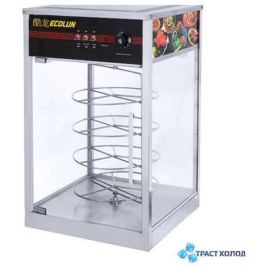 Витрина тепловая для пиццы Ecolun служит для демонстрации готовой пиццы с диаметром до 38.5 см, при этом устройство поддерживает температуру блюда до 65С.