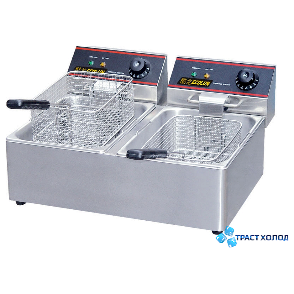 Фритюрница ECOLUN EN 44L  используется на предприятиях общественного питания для жарки во фритюре картофеля, рыбы, а также других кондитерских и кулинарных изделий.