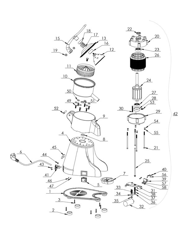 Электродвигатель (50.07.0.0029) CJC 1300 R_#42 для соковыжималки т.м.VORTMAX модели CJC 1300 R