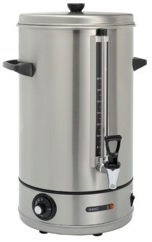 • 304x304x560 мм без ручек, с ручками d 385 мм, кран выдаётся вперёд на 66 мм, 3,2 кВт, 220В, настольный, подключение к водопроводу, со стеклянным окном уровня воды, одностенный из нержавеющей стали CrNi 18-9, ёмкость 20 л, за один раз проливает 18 л, производительность в час: 30 литров; время нагрева за 34 мин. с 20 до 97 °C, регулируемая температура от 0 до +97°C