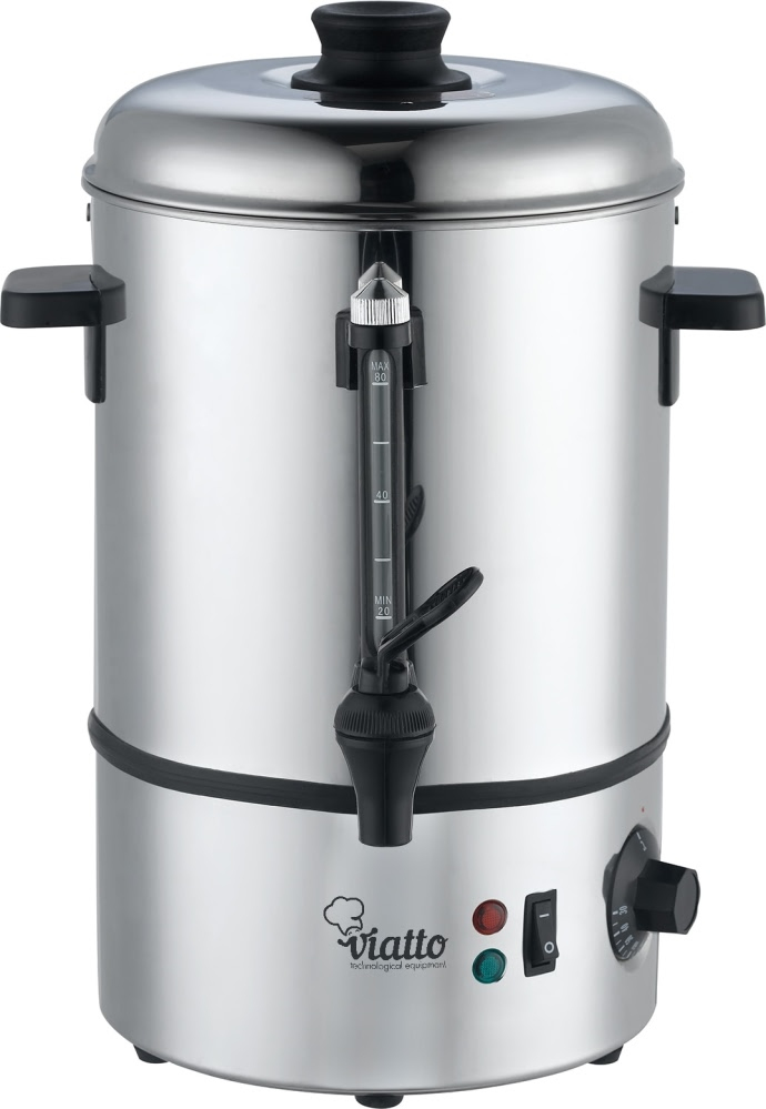 Электрокипятильник VIATTO MK-WB08SS предназначен для нагрева и кипячения воды, а также поддержания её в горячем состоянии. Оснащён терморегулятором, закрытым ТЭНом и одинарными стенками. Есть мерное стекло, позволяющее отслеживать уровень воды. Благодаря удобным ручкам оборудование можно легко переносить. Корпус изготовлен из нержавеющей стали.
