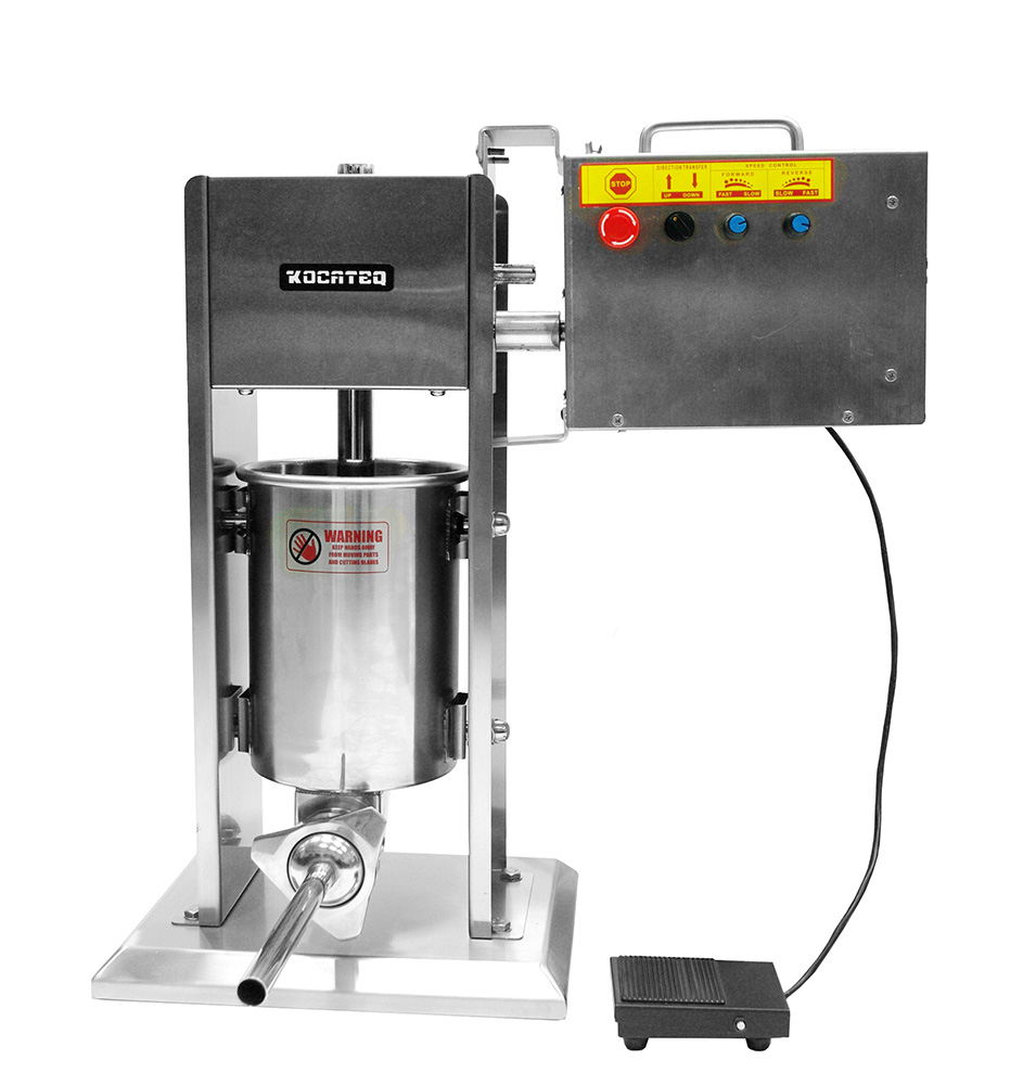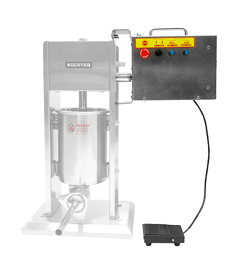 Электропривод шприца колбасного вертикального Kocateq SV357 ESS (01) используется совместно с вертикальными шприцами SV3, SV5 и SV7 при изготовлении купат и колбас на предприятиях общественного питания и торговли. Модель оснащена электронным блоком управления с принудительным охлаждением вентилятором, бесступенчатым регулятором скорости движения штока и педальным управлением. Корпус выполнен из нержавеющей стали AISI 430.