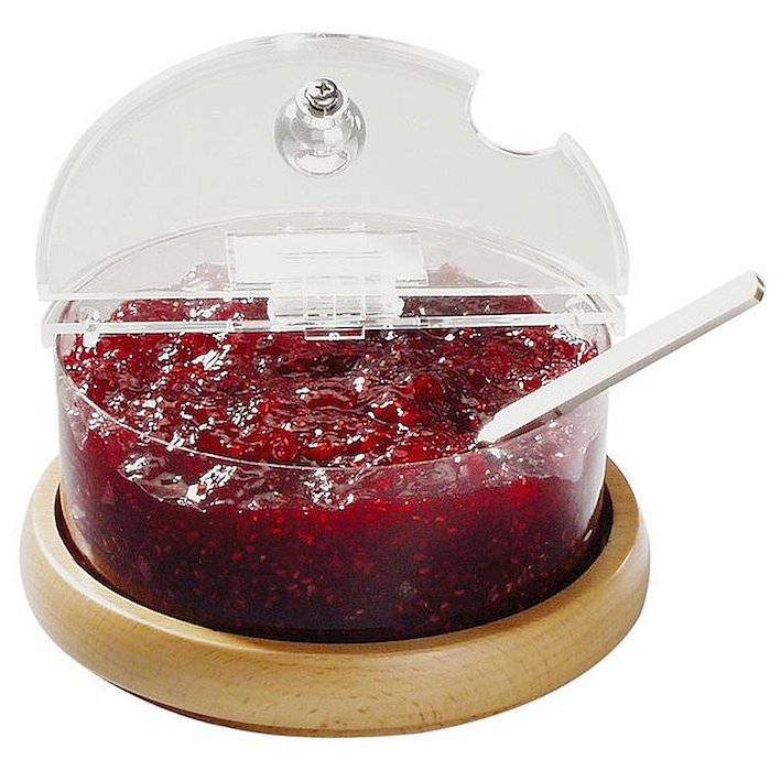 Емкость для джема охлаждаемая 0,6 л. d=14 см. h=9 см. с крышкой на деревянной подставке APS
