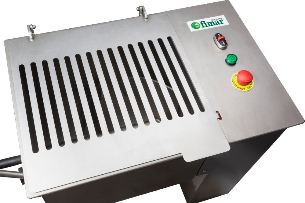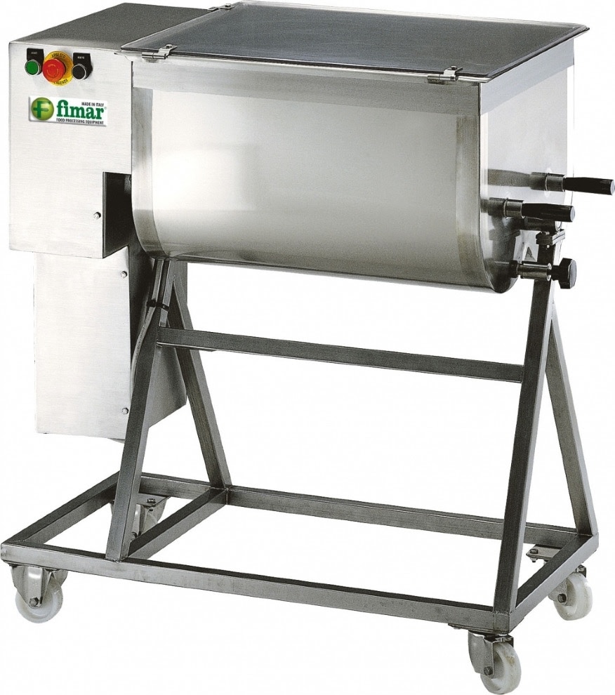 Фаршемешалка FIMAR 50C1P предназначена для перемешивания различных видов фарша до однородной консистенции на предприятиях общественного питания и торговли. Оснащена микровыключателем, расположенным на крышке, и колёсами (2 с тормозом). Каркас изготовлен из нержавеющей стали с пескоструйной обработкой.