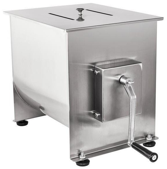 Конструкция из нержавеющей стали обеспечивает высокую прочность и удобство в очистке. Благодаря ручному управлению, фаршемешалка не требует подключения к электросети, что позволяет использовать ее в любом месте.