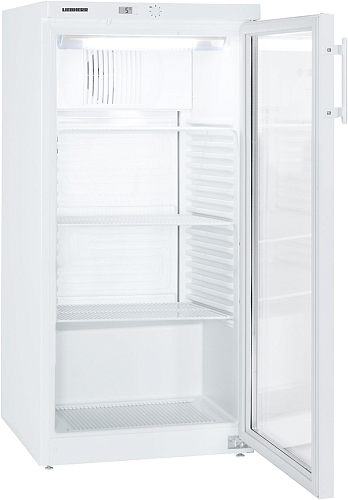Компактный холодильник с прозрачной дверцей Liebherr FKv 2643 служит для продажи напитков и другой продукции в любых помещениях.