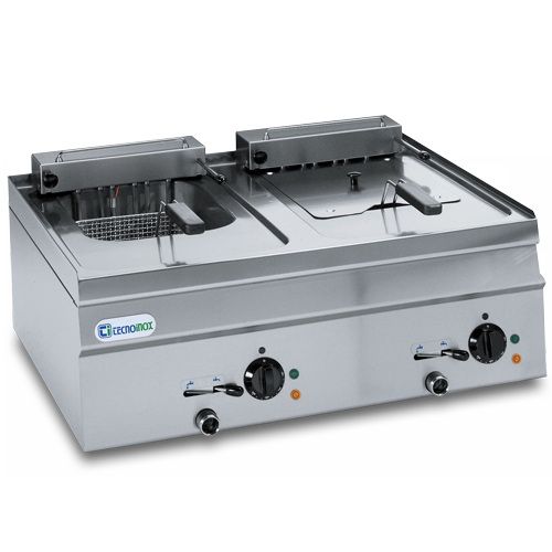Фритюрница TECNOINOX FR8ES7 предназначена для автоматического приготовления крупных объемов блюд во фритюре, то есть горячем растительном или животном жире. Это оборудование просто незаменимо для самых различных предприятий общепита, предлагающих своим гостям такие блюда, как картофель-фри, котлеты по-киевски и др. В процессе приготовления с использованием фритюрницы корзины, наполненные полуфабрикатами, опускаются в ванны с разогретым жиром, под воздействием которого и происходит термическая обработка. Количество ванн – 2. Вместимость каждой ванны фритюрницы составляет 8 л. Материал корпуса – нержавеющая сталь, благодаря чему обеспечивается долговечность эксплуатации.  Представленная модель фритюрницы надежна, качественно выполнена, а также весьма удобна в эксплуатации.