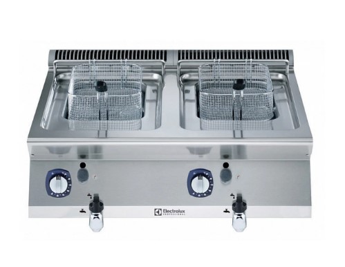 Фритюрница 700СЕР ELECTROLUX E7FRGH2B00 371067 Г не просто качественно выполнена и надежна, но при этом еще и весьма удобна в эксплуатации. Данное оборудование предназначается для самых различных заведений общепита. емпературный диапазон модели E7FRGH2B00: max температура составляет 185 °С, min температура составляет 105 °С. Заявленные габариты газовой фритюрницы E7FRGH2B00: длина – 800 мм, глубина – 730 мм, высота – 250 мм. В процессе приготовления благодаря использованию фритюрницы корзины, наполненные полуфабрикатами, опускаются в ванны с разогретым жиром, под воздействием которого и происходит термическая обработка. При этом количество ванн – 2. 7 л составляет вместимость ванны фритюрницы газовой.