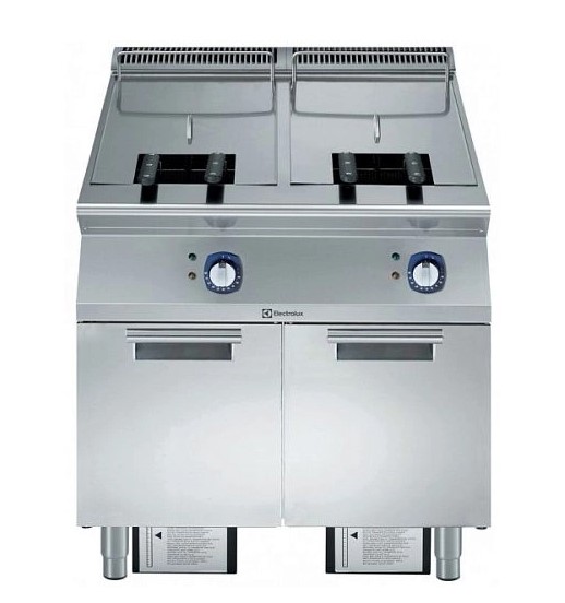 Фритюрница 900сер ELECTROLUX E9FREH2JF0 391090 предназначена для обжаривания разнообразных продуктов (картофель, мясо, рыба, овощи и фрукты в кляре) в разогретом до определенной температуры растительном или животном масле (фритюре).Корпус фритюрницы выполнен из пищевой нержавеющей стали AISI 304 и соответствует всем стандартам и нормам гигиены профессионального кухонного оборудования. Аппарат оснащен электромеханической панелью управления, на которой расположены два поворотных тумблера (терморегулятор и таймер для ванны) и два световых индикатора, уведомляющих о достижении маслом заданной температуры.В комплекте2 ванны 340*400*575 объемом 21/23л каждая.