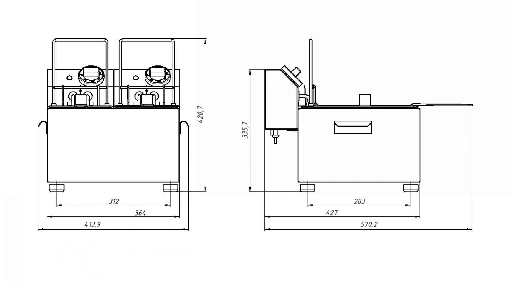 2 ванны на max/раб 6,5+6,5/4,5+4,5л, корзина и фритюрница полностью из н/стали