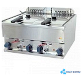 В процессе приготовления благодаря использованию фритюрницы корзины, наполненные полуфабрикатами, опускаются в ванны с разогретым жиром, под воздействием которого и происходит термическая обработка. При этом количество ванн – 2. 20 л составляет вместимость ванны фритюрницы. В данной модели материал корпуса – нержавеющая сталь, благодаря чему обеспечивается долговечность эксплуатации. Тип энергоносителя в модели PF-80 – электрический. И, что немаловажно, такая фритюрница проста в обращении, система управления – механическая. Фритюрница газовая PF-80 KOVINASTROJ оснащена аварийным термостатом для защиты от работы без масла. В нижней части рабочего объема расположен шаровой вентиль для слива отработанного масла. Шарнирное закрепление нагревательных элементов дает возможность легко производить санитарно-гигиеническую очистку рабочих емкостей.