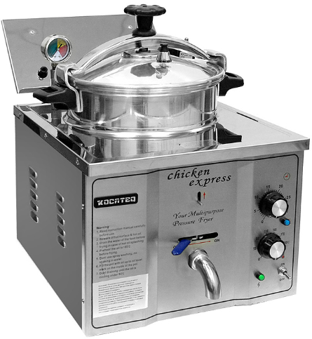 Фритюрница Kocateq PFE16 предназначена для приготовления различных продуктов в большом количестве масла или жира на предприятиях общественного питания и торговли. Модель оснащена механической панелью управления, термостатом для регулировки температуры, таймером до 90 минут и защитным термостатом, автоматически отключающим напряжение при повреждении основного термостата. Емкость выполнена из алюминия, корпус из нержавеющей стали AISI 304, крышка из каленого стекла, ножки из пластика. В комплект поставки входит корзина с крючком для фиксирования корзины в верхнем положении над емкостью.