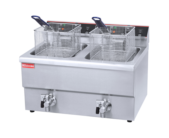 Фритюрница HEF-12L-2 – аналог модели HEF-12L с двумя гастроемкостями (ваннами). Предназначена для жарки в разогретом масле различных продуктов – мяса, рыбы, морепродуктов, овощей (в том числе в кляре), изделий из теста и т.п. В HEF-12L-2 можно готовить гарниры, основные блюда и горячие закуски с хрустящей корочкой. Может использоваться в столовых, барах, ресторанах, кафе и на других предприятиях общественного питания. Модель востребована и в ритейле – ее устанавливают в магазинах и супермаркетах с собственной продукцией и отделами кулинарии.