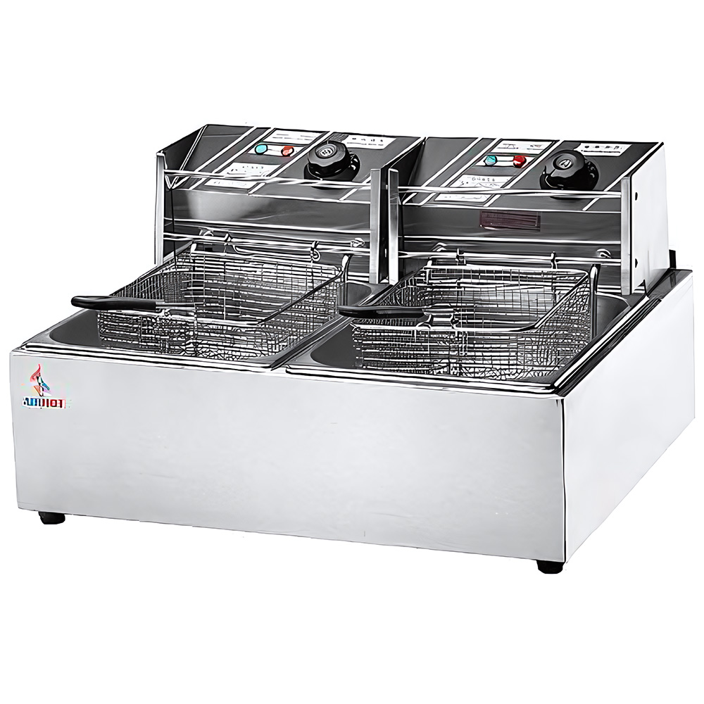 Фритюрница AIRHOT EEF8+8 используется в заведениях быстрого питания, кафе и ресторанах для приготовления широкого спектра блюд в большом количестве горячего масла.