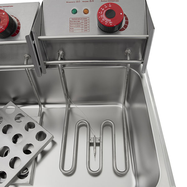 Фритюрница-чебурецница рассчитана на приготовление порции блюда в течение 5-10 минут. Она подходит как для изготовления готовых блюд, так и для разогрева полуфабрикатов или готовой еды. Отсутствие крана для слива масла и защиты от сухого старта позволяет уменьшить стоимость оборудования, но при этом сохранить функционал и работоспособность.