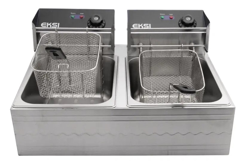 Фритюрница EKSI 6+6L Electric Fryer, электр предназначена для обжарки пищевых продуктов во фритюре с использованием специальной сетчатой корзины в большом количестве жира или масла.