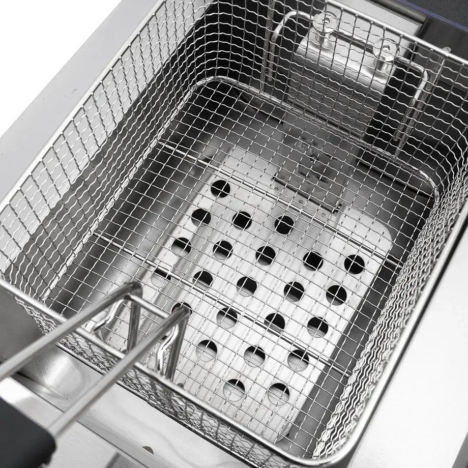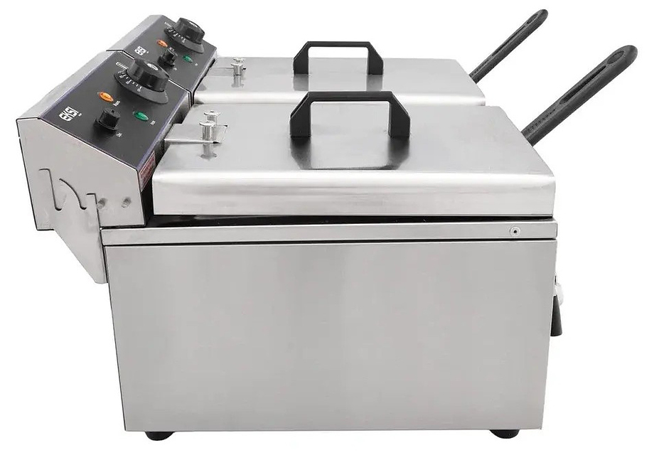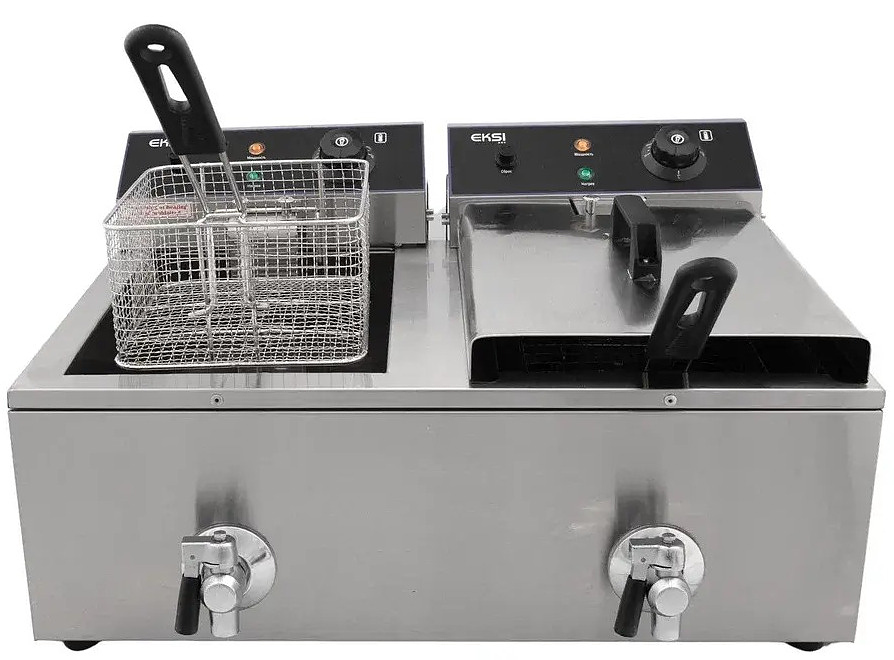 Фритюрница EKSI GRT-E20L используется на предприятиях общественного питания и торговли для приготовления картофеля-фри и других блюд путем обжарки в большом количестве масла. Модель оснащена 2 ваннами, устойчивыми нескользящими опорами и расположенной в тыльной части наклонной электромеханической панелью управления. Корпус, ванны и корзины выполнены из нержавеющей стали.