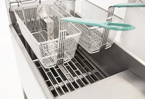 В комплекте с фритюрницей поставляются две корзины из качественной нержавеющей стали. В нижней части предусмотрена удобная полка. Аварийный термостат предотвратит оборудование от перегрева. Удобная и долговечная электро-механическая система управления.
