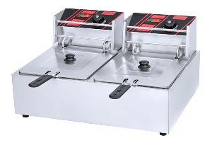 Электрическая фритюрница с двумя съемными ваннами для фритюра оснащена независимым механическим управлением и световыми индикаторами.