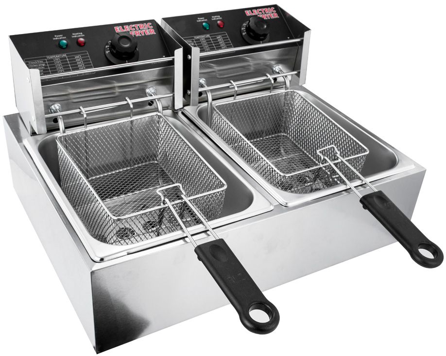 Электрическая фритюрница оснащена механическим управлением, световыми индикаторами и защитой от перегрева.