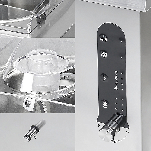 В комплект поставки входят лопатка, набор съемных насадок для лопастей и ершик для чистки сливной трубки.