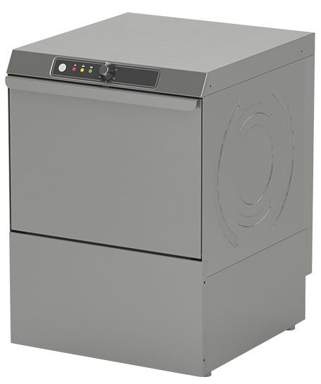 Электромеханическая панель управления со световыми индикаторами, мощной моющей помпой и защитным термостатом для предотвращения перегрева машины. Корпус, танк, фильтр в танке и ополаскивающие рукава выполнены из нержавеющей стали, моечные рукава - из полипропилена.