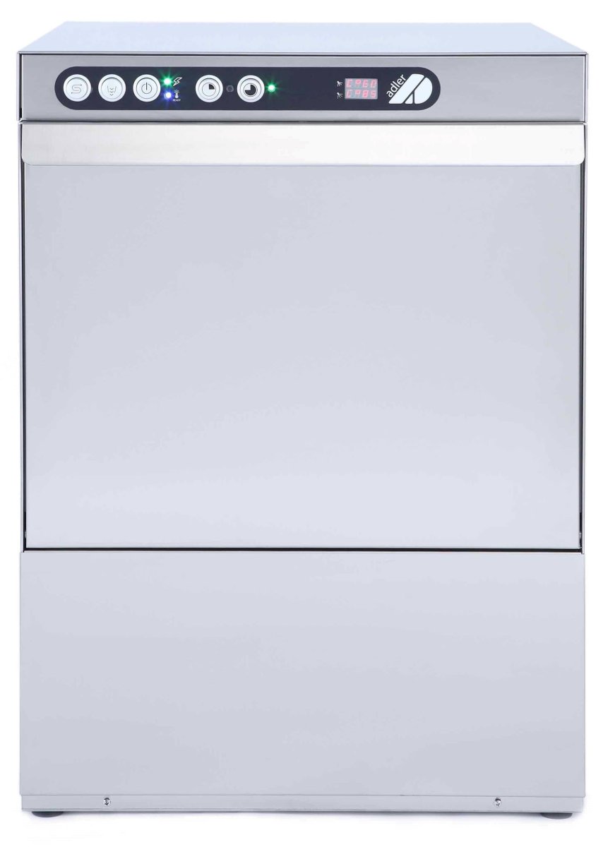 Фронтальная посудомоечная машина Adler ECO 50 PD без сливной помпы предназначена для мытья стаканов, бокалов, чашек, тарелок и столовых приборов на предприятиях общественного питания и в ресторанах.