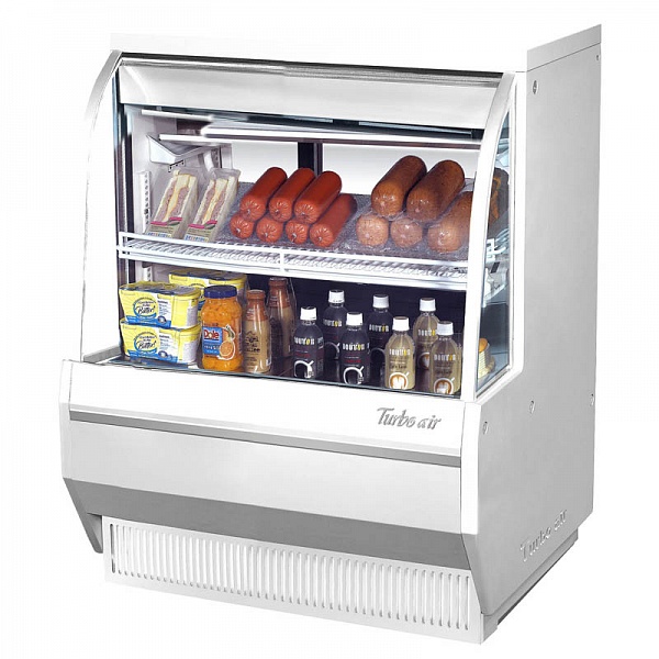 Гастрономическая витрина Turbo Air TCDD-36L-W/R используется для демонстрации, охлаждения и кратковременного хранения продуктов и напитков на предприятиях общественного питания и торговли.