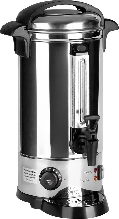 Кипятильник GASTRORAG DK-LX-200 – это техника для профессиональной кухни наливного типа. Он требует подключения к водопроводу и обеспечит вас горячей водой для приготовления напитков повсюду, где есть электрические розетки 220 V. Кипятильник имеет объем 20 л и идеально подходит для ресторанов, кафе, баров и столовых средней пропускной способности. Время кипячения составляет 45-55 минут в зависимости от начальной температуры воды. После закипания воды в целях экономии электроэнергии термопот автоматически переходит в режим подогрева, т.е. периодически включается и выключается для поддержания температуры. Заливной кипятильник для воды Gastrorag DK-LX-200 имеет прочный корпус из нержавеющей стали с элементами из черной пластмассы и двумя удобными термоизолированными ручками для переноски. Стенки корпуса одинарные. Оборудование оснащено регулируемым термостатом с защитой от сухого включения. Температура регулируется в пределах от 30 до 110оС. В положении 110оС кипячение воды будет непрерывным. Закрытый ТЭН упрощает процедуру ухода и очистки от накипи. Уровень воды в резервуаре легко контролировать по показаниям мерного стекла. Розлив воды осуществляется через пластмассовый кран с системой "капля стоп".