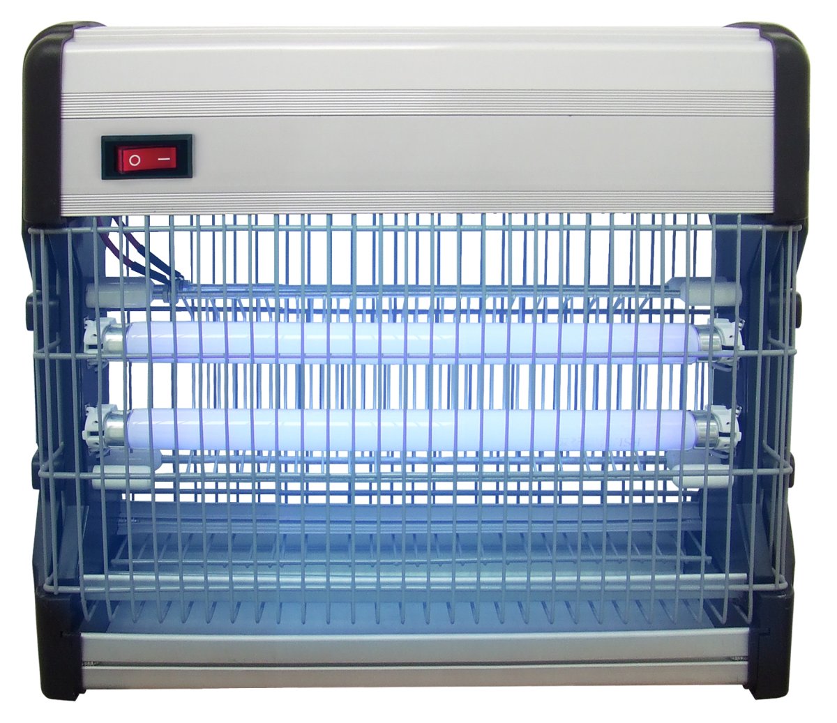 Инсектицидная лампа Gastrorag EGO-02-12W предназначена для уничтожения электрическим током летающих насекомых в помещениях площадью до 80 квадратных метров: в производственных помещениях, в ресторанах и магазинах, на складах. В комплект электрической ловушки для мух входят 2 УФ лампы мощностью по 10 Вт, рассчитанные на 8000 часов работы. Излучение ламп не представляет опасности для людей и домашних животных. Оно привлекает насекомых в любое время суток, в том числе и при дневном свете. Насекомые попадают на металлическую решетку, находящуюся под высоким напряжением (2500 В), и погибают. Лампа уничтожитель насекомых EGO-02-20W заключена в прочный корпус из алюминиевого сплава с боковинами из ABS-пластика. Благодаря тому, что металлические решетки расположены с обеих сторон, площадь действия электромухобойки значительно увеличивается. Ультрафиолетовая мухоловка может быть размещена на стене, на прилавке или подвешена к потолку (в комплект входит цепь для подвешивания).