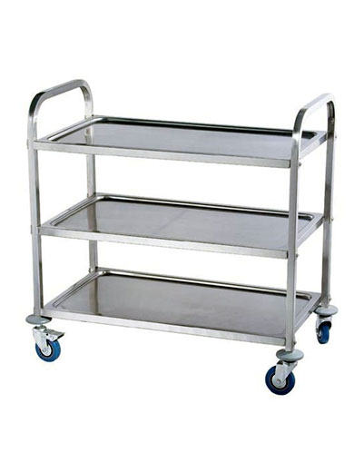 Тележка вспомогательная Gastrorag XBUS3-2133N – это инвентарь для профессиональной кухни. Столик для сервировки на колесиках используется на предприятиях общепита и торговли для перемещения готовых блюд, напитков и посуды в зал приёма пищи, а также для подачи грязной посуды из зала в моечное отделение. Трехъярусная тележка изготовлена из нержавеющей стали толщиной 0,7 мм, поставляется в разобранном виде и легко собирается при помощи входящего в комплект шестигранного ключа. В комплект поставки входят две П-образные рамы, три сплошные полки с бортиками и четыре поворотных колеса с покрытием из термопластичной резины, два из которых снабжены тормозом для безопасной фиксации тележки в нужном положении. Полки сервировочного стола на колесах фиксируются к рамам с помощью болтового соединения. Каждая полка выдерживает нагрузку до 30 кг.