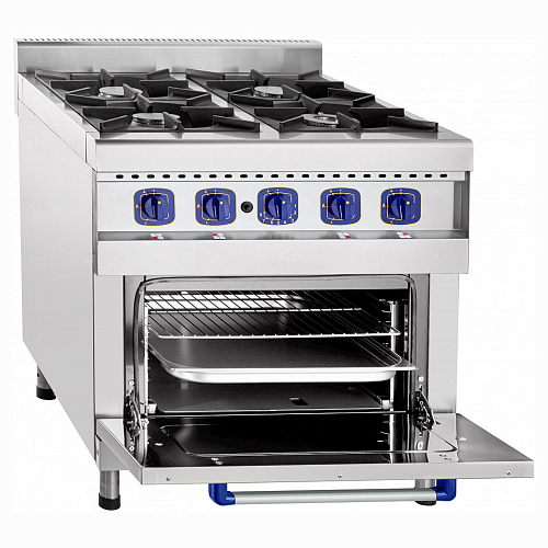 Четырех горелочная газовая плита Abat (Чувашторгтехника) ПГК-49ЖШ с жарочным шкафом используется для приготовления различных блюд в наплитной посуде, а также для жарки полуфабрикатов из мяса, рыбы и овощей в различных заведениях общепита.