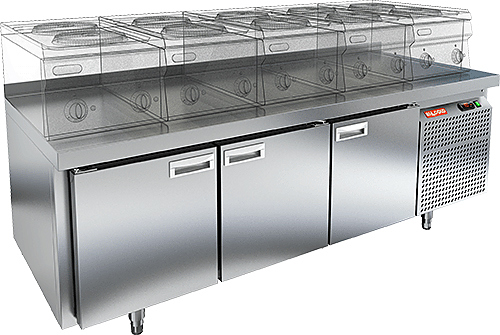 Столешница и корпус из качественной нержавеющей стали легко выдержит высокие нагрузки. Холодильный стол позволит сэкономить пространство помещений и избавит от необходимости переноски продукции, которой необходима последующая обработка, от стоящего в ином помещении оборудования.